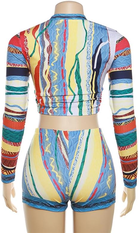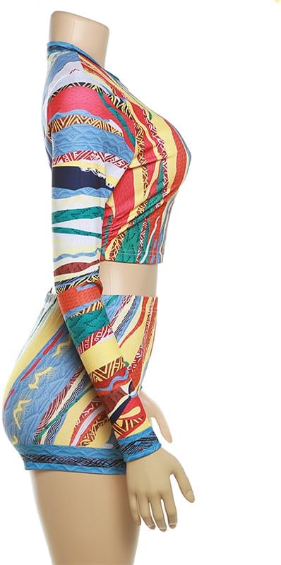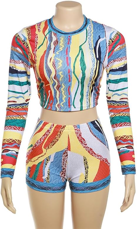 This multi color printed long sleeve top short set is perfect for adding a pop of color to your wardrobe. With its vibrant print and comfortable fit, this set is both stylish and practical. Made with high-quality materials, it will keep you looking and feeling great all day long.