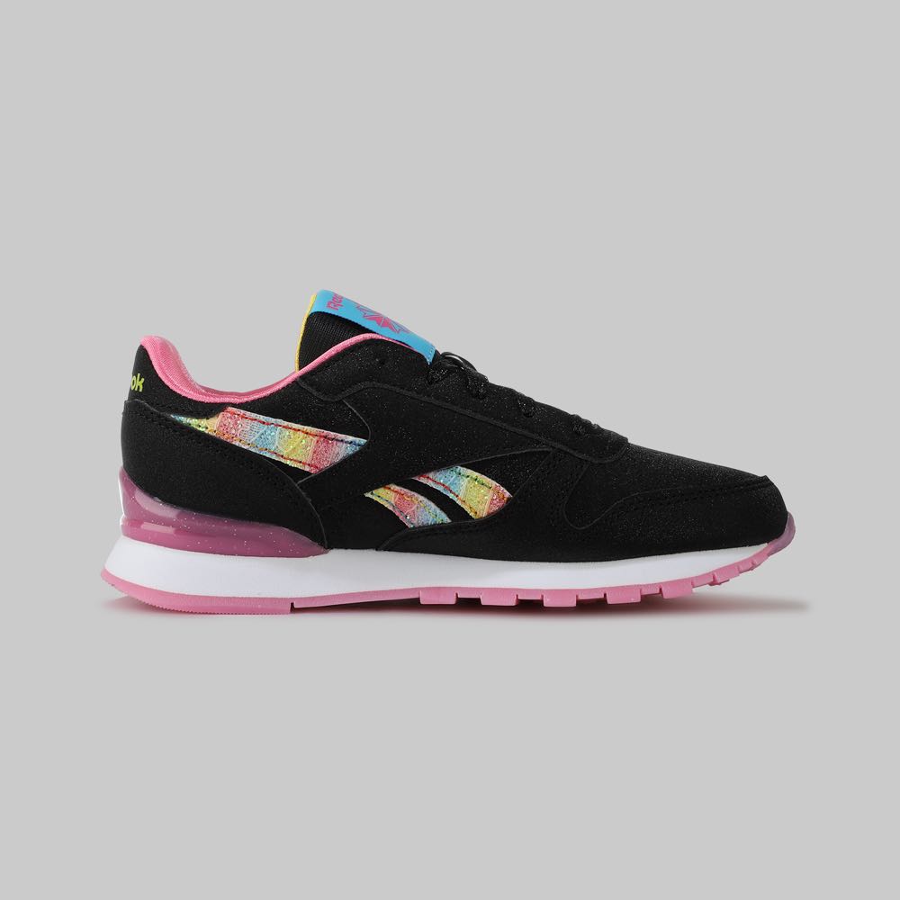 Does your little one love racing around the playground at recess? Of course they do! Give them the shoes to match their energy—the Reebok Classic Leather Step 'n' Flash. Featuring a sleek black design with vibrant multicolored stripes, these kicks are built for non-stop fun and motion. Lightweight, supportive, and ready for action, they’ll keep your kid comfy and confident from the classroom to the jungle gym.