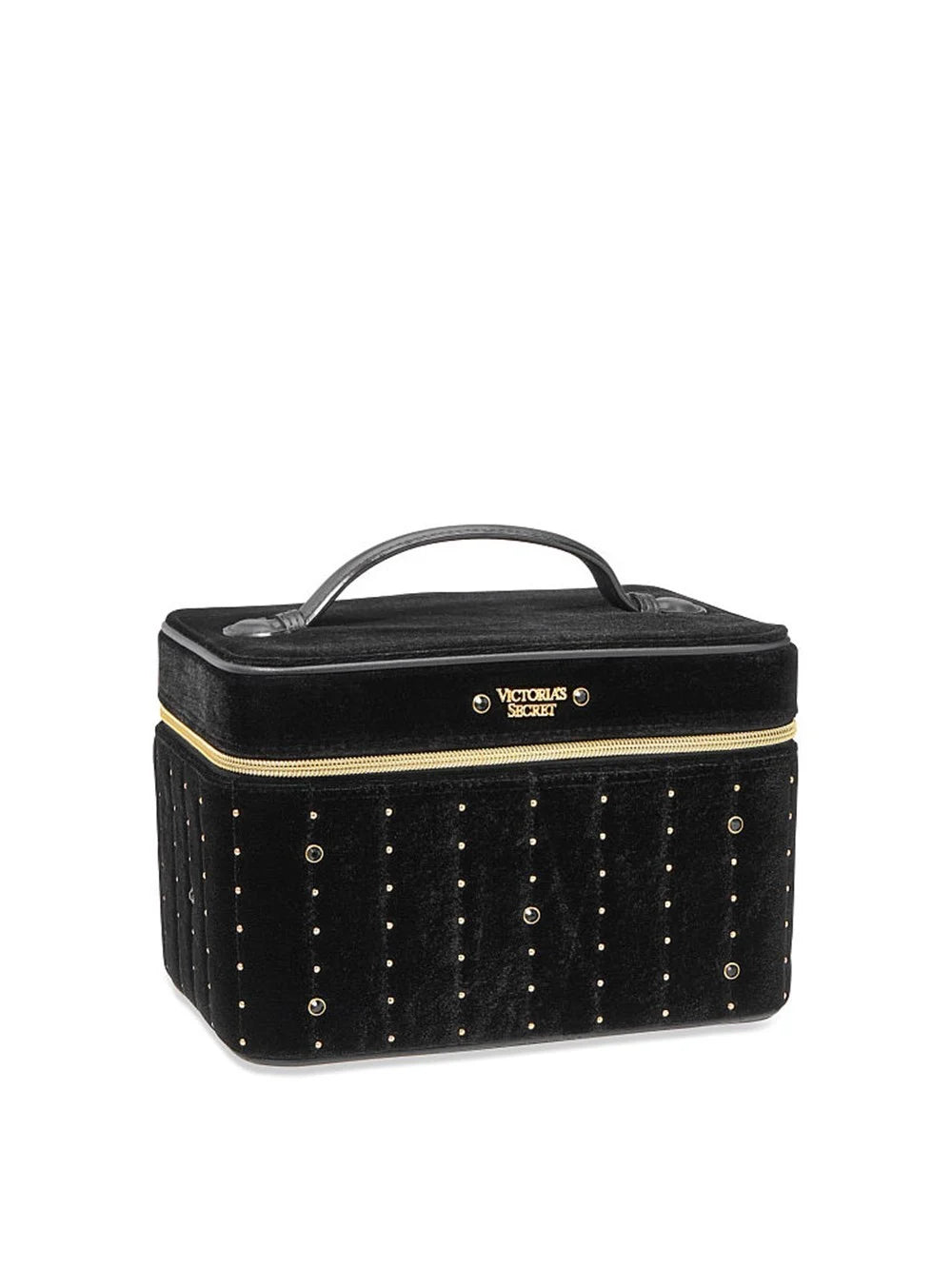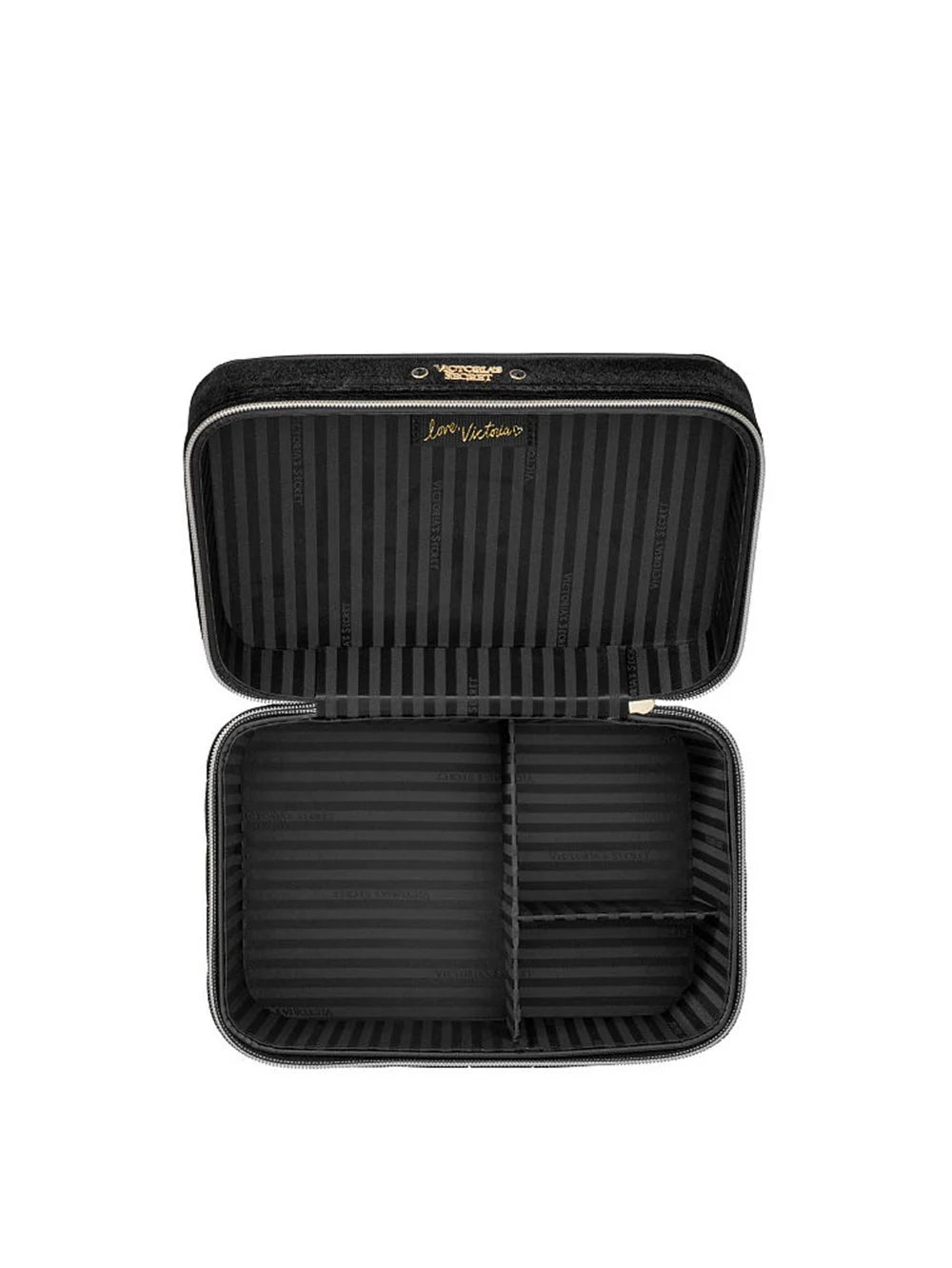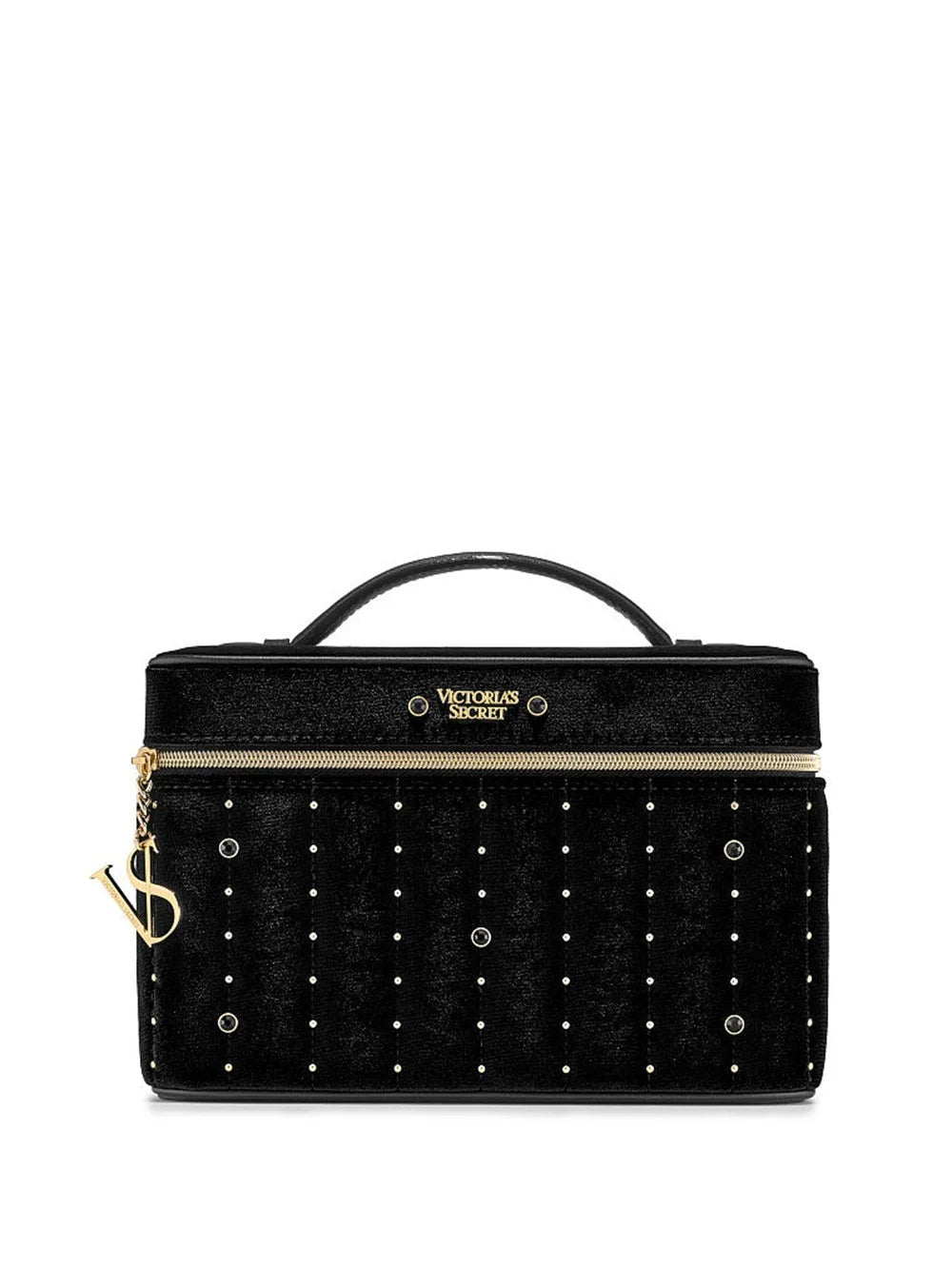 Victorias Secret Cosmetic Makeup Travel Case Black Velvet Gold VS Charm